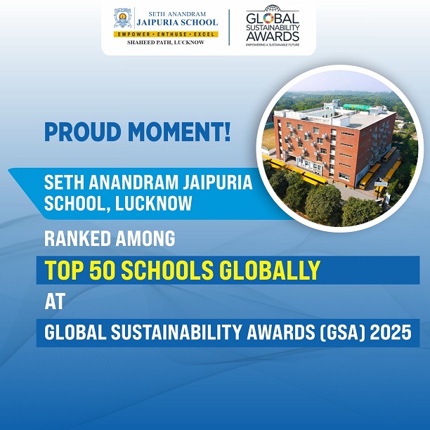 We are delighted to share that Seth Anandram Jaipuria School, Lucknow has been ranked among the Top 50 Schools Globally at the Global Sustainability Awards 2025, a recognition of our school’s commitment to excellence and progressive education.