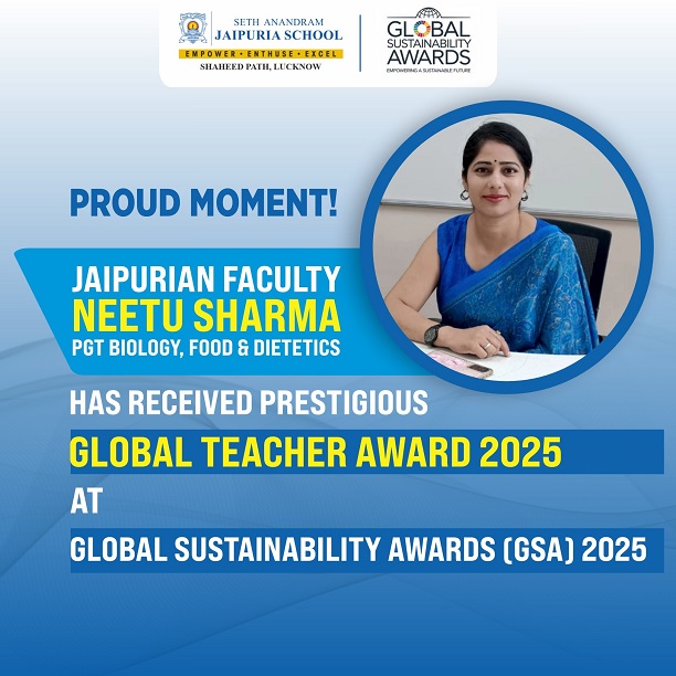 Furthermore, Ms. Neetu Sharma, PGT Biology & Food & Dietetics, has received the prestigious Global Teacher Award 2025, celebrating her innovative teaching practices and contribution to sustainability.