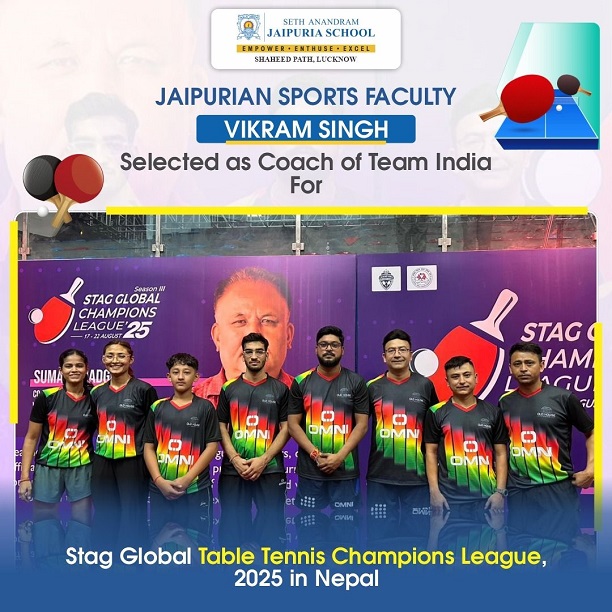 It is a proud moment for Seth Anandram Jaipuria School, Lucknow as our Sports Teacher, Mr. Vikram Singh, has been selected as a Coach for the prestigious Stag Global Champions League 2025 – Season III, scheduled from 17th to 22nd August in Kathmandu, Nepal. Recognized as the “IPL of Table Tennis,” this championship brings together elite clubs across Asia.