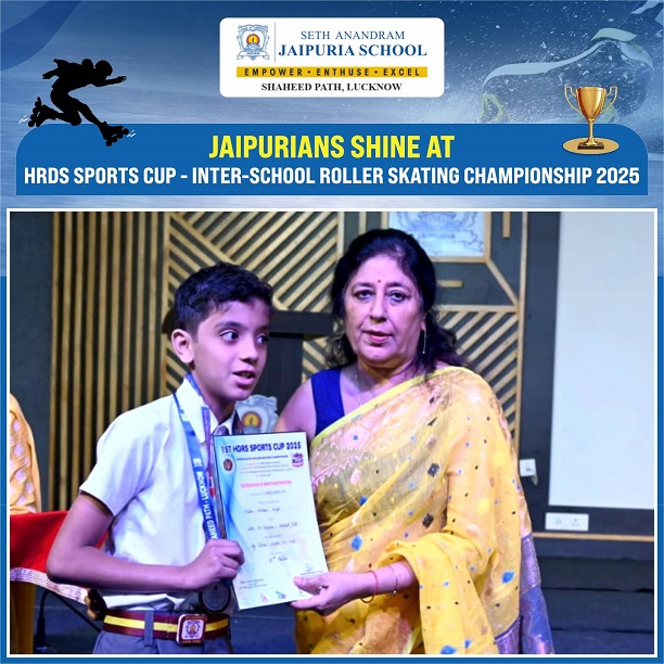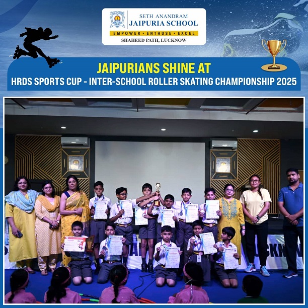 Recently, the Primary Section of Seth Anandram Jaipuria School, Lucknow, participated in the 1st HDRS Sports Cup Inter-School Roller Skating Championship 2025, hosted by K.R. Mangalam School. Competing against 400+ talented skaters, our 10 young Jaipurians displayed exceptional skill and determination, each bringing home a medal.